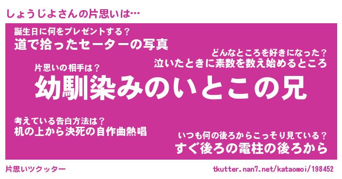 | 男性向けラノベタイトル風あだ名 | 『しょうじよの憂鬱』 |