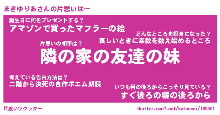 | 女子向けラノベタイトル風あだ名 | 『(仮)まきゆりあのやんごとなき事情』 |