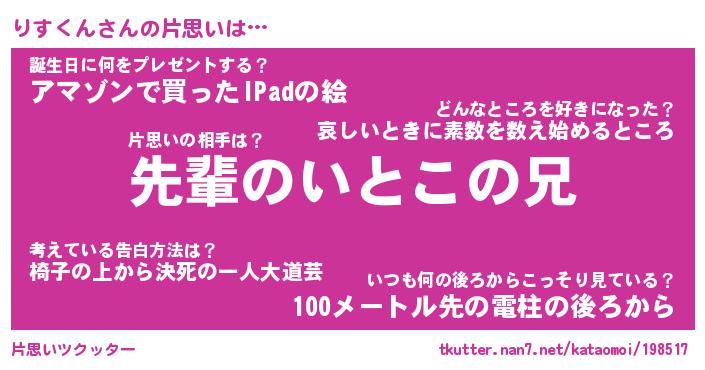 | 意味不明あだ名 | 『ペロリンりすくん』『永久保存りすくん』 |