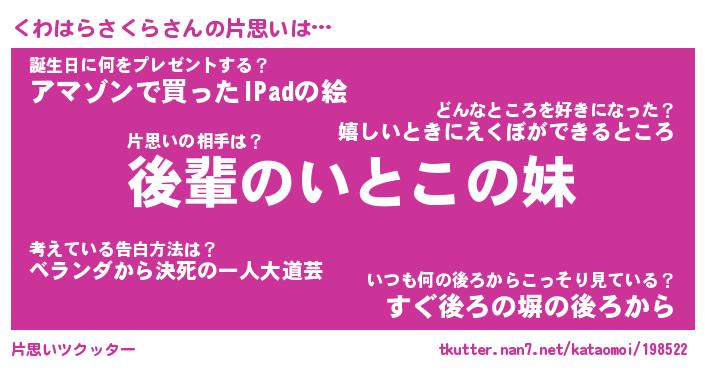 | 意味不明あだ名 | 『ペロリンくわはらさくら』 |