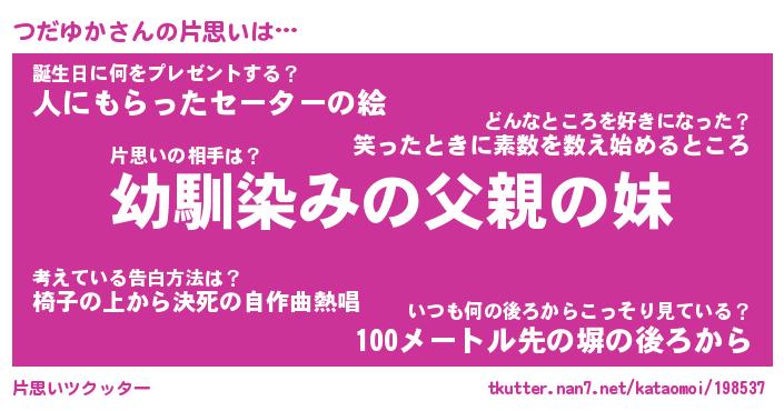 | 意味不明あだ名 | 『ペロリンつだゆか』『永久保存つだゆか』 |