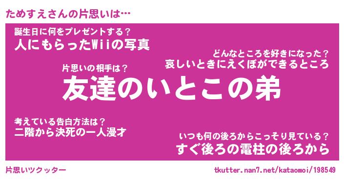 | 2回繰り返すあだ名 | 『ためため』『たためめ』『ぬめぬめ』 |