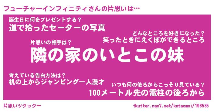| 男性向けラノベタイトル風あだ名 | 『フューチャーインフィニティの憂鬱』 |