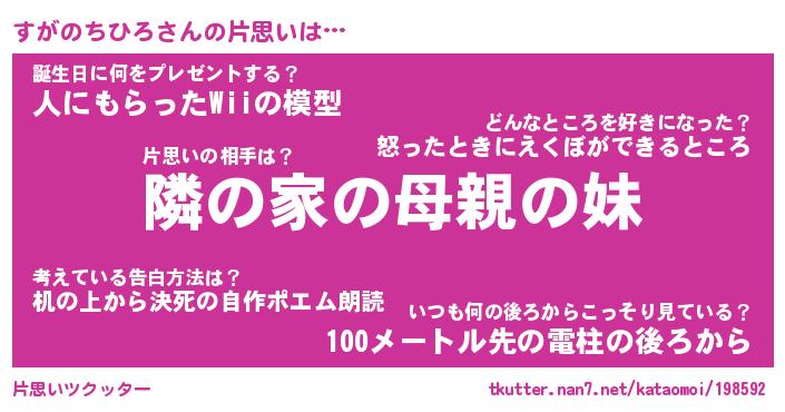 男性向けラノベタイトル風あだ名 | 『すがのちひろの憂鬱』 |