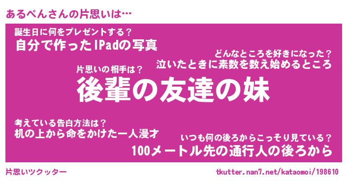 | 意味不明あだ名 | 『ペロリンあるぺん』『永久保存あるぺん』 |