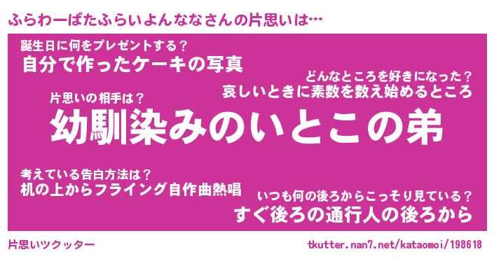 | 男性向けラノベタイトル風あだ名 | 『ふらわーばたふらいよんななの憂鬱』 |