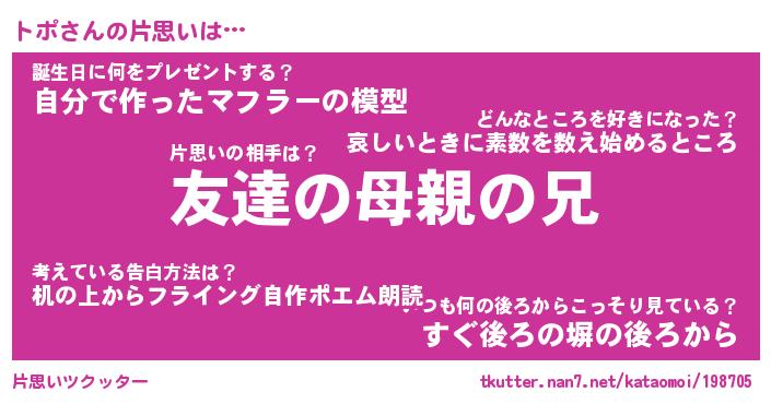 | 自動車の名前っぽいあだ名 | 『トポティマ』『トクア』『トント』 |