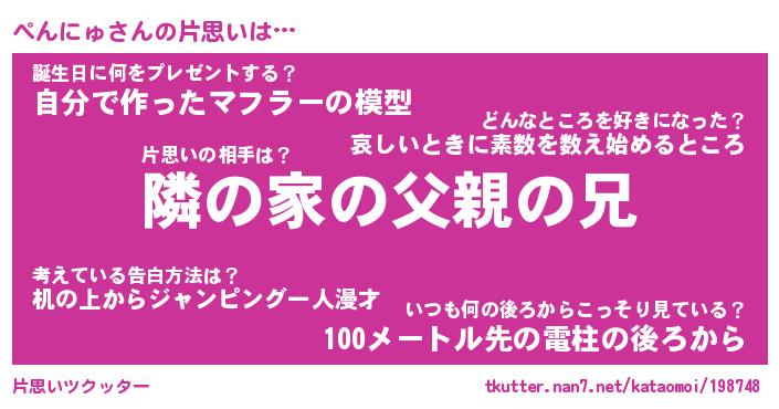| 男性向けラノベタイトル風あだ名 | 『ぺんにゅの憂鬱』 |