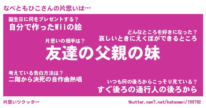 | ヘコむあだ名 | 『なべにゅー』『牛乳』『なべを』 |