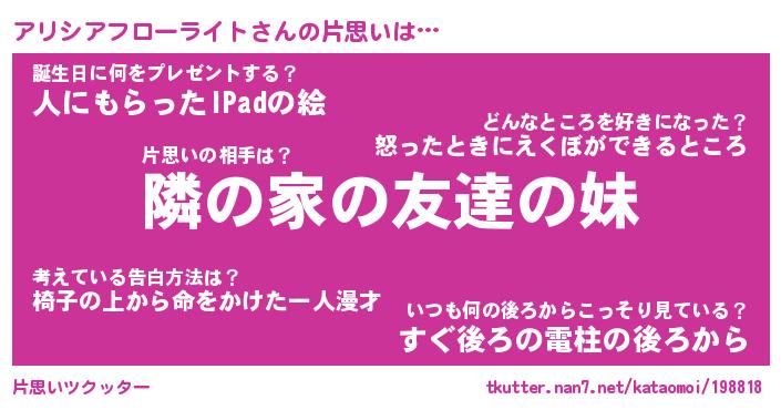 | 男性向けラノベタイトル風あだ名 | 『アリシアフローライトの憂鬱』 |