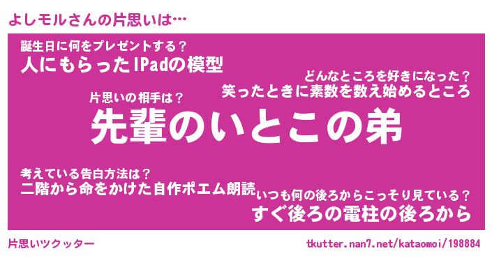 | 胡散臭い通販商品みたいなあだ名 | 『モテモテ間違いなし水晶球…その名も「よしモル」』 |