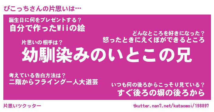 | ヘコむあだ名 | 『ぴこにゅー』『つくし』『ぴこっぺ』 |