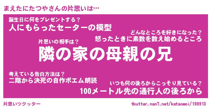 | 男性向けラノベタイトル風あだ名 | 『まえたにたつやの憂鬱』 |