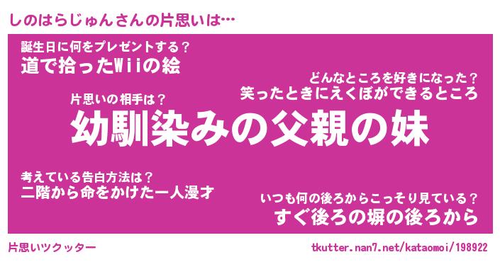 | 男性向けラノベタイトル風あだ名 | 『しのはらじゅんの憂鬱』 |