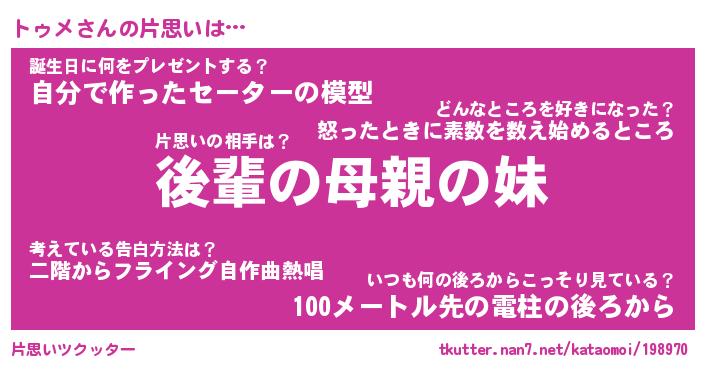 | ポケモン風あだ名 | 『トゥチュウ』『トゥメダネ』 |