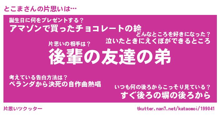 | ポケモン風あだ名 | 『トコチュウ』『トコマダネ』 |
