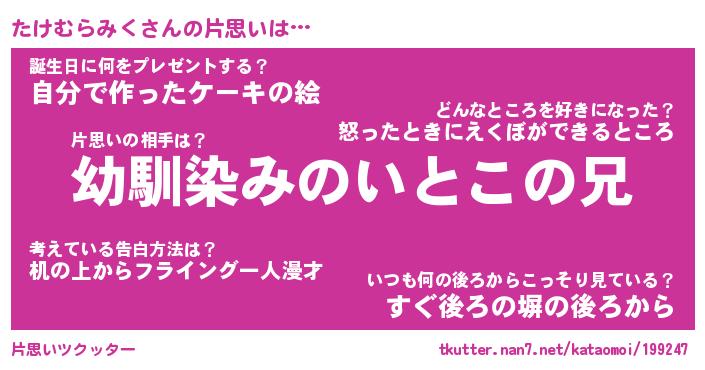 | 胡散臭い通販商品みたいなあだ名 | 『必ず成功する水晶球…その名も「たけむらみく」』 |