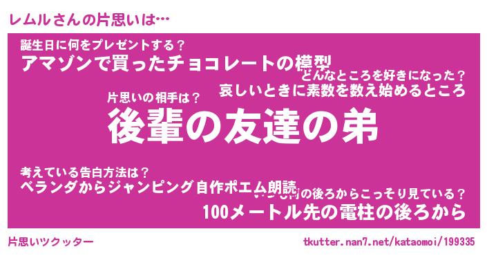 | 意味不明あだ名 | 『ペロリンレムル』『レムルフォーエバー』 |