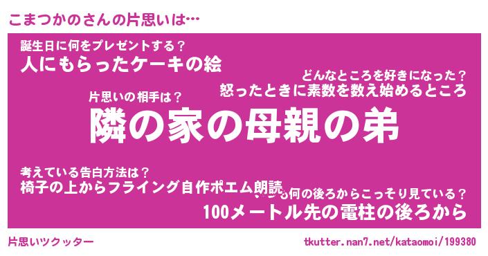 | 胡散臭い通販商品みたいなあだ名 | 『必ず成功するブレスレット…その名も「こまつかの」』 |