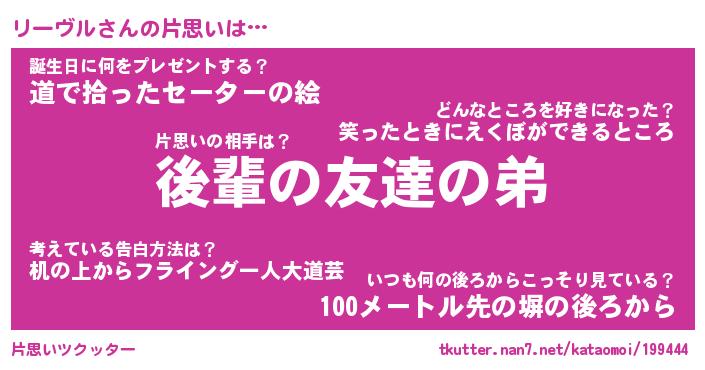 | 胡散臭い通販商品みたいなあだ名 | 『モテモテ間違いなし霊験あらたかなお札…その名も「リーヴル」』 |