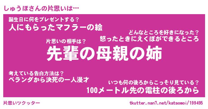 | 男性向けラノベタイトル風あだ名 | 『しゅうほの憂鬱』 |