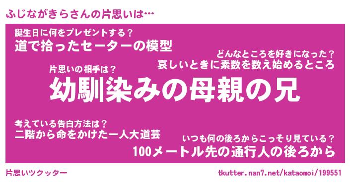 | ヘコむあだ名 | 『ふじにー』『牛乳』『ふじ太郎』 |