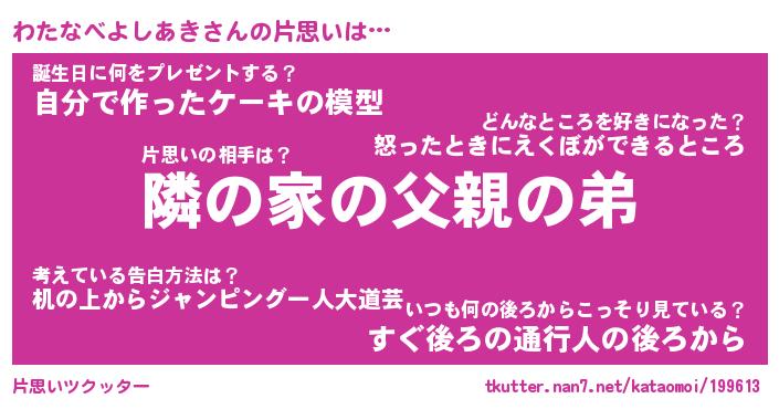 | 胡散臭い通販商品みたいなあだ名 | 『必ず成功するブレスレット…その名も「わたなべよしあき」』 |