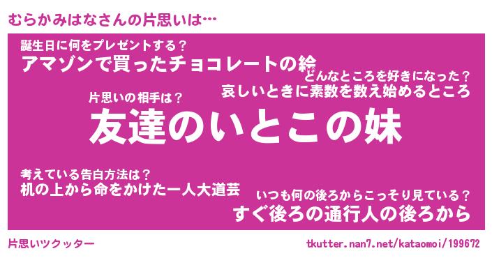 | 胡散臭い通販商品みたいなあだ名 | 『億万長者になれる水晶球…その名も「むらかみはな」』 |