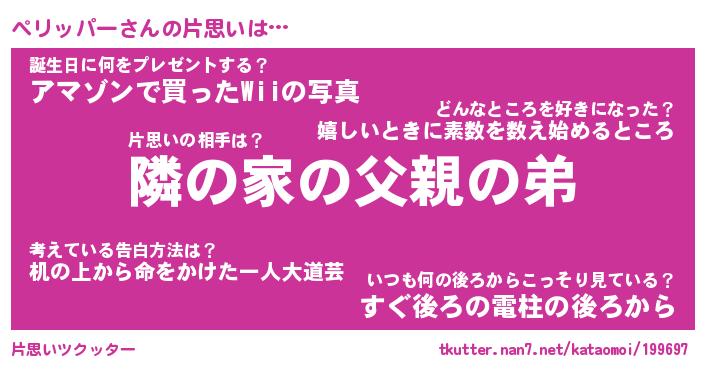 | ヘコむあだ名 | 『ぺリにゅー』『酢こんぶ』 |