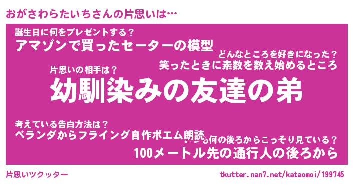 | 男性向けラノベタイトル風あだ名 | 『おがさわらたいちの憂鬱』 |