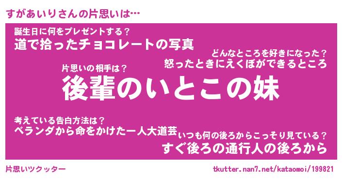 | 伝説のあだ名 | 『封印されしスナイパーすがあいり』 |