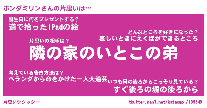 | 男性向けラノベタイトル風あだ名 | 『ホンダミリンの憂鬱』 |