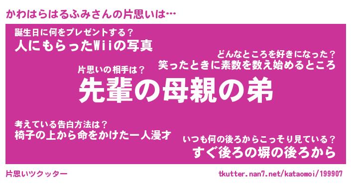 | ツイッター | かわはらはるふみさんのツイッターID『katatsumuri_star』 |