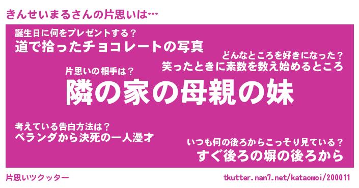 | 男性向けラノベタイトル風あだ名 | 『きんせいまるの憂鬱』 |