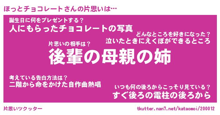 | 意味不明あだ名 | 『ペロリンほっとチョコレート』 |