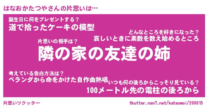 | 胡散臭い通販商品みたいなあだ名 | 『必ず成功する霊験あらたかなお札…その名も「はなおかたつや」』 |
