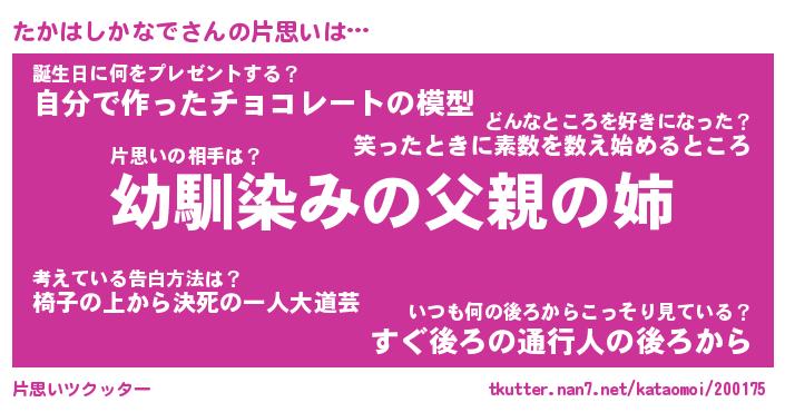 | 女子向けラノベタイトル風あだ名 | 『(仮)たかはしかなでのやんごとなき事情』 |