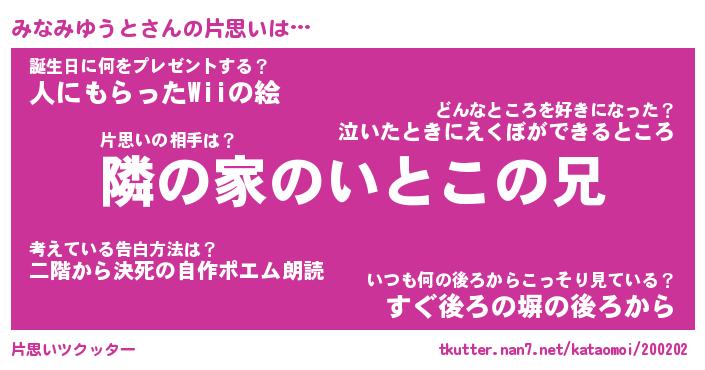 | ヒーロー風カッコイイあだ名 | 『スーパーミナミユウト』『天弓騎士ミナ』 |