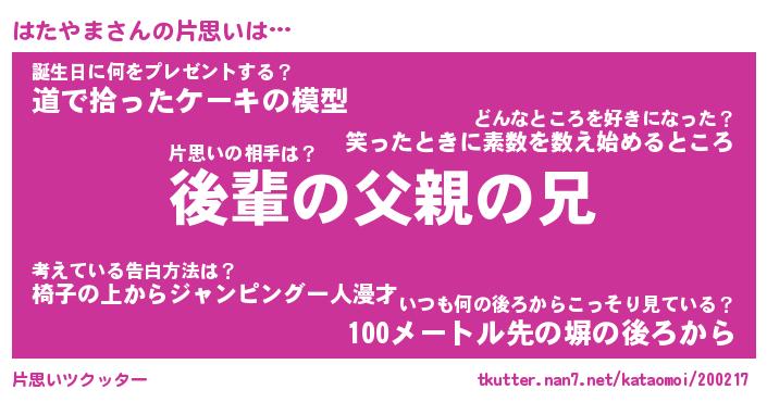 | 胡散臭い通販商品みたいなあだ名 | 『億万長者になれるブレスレット…その名も「はたやま」』 |