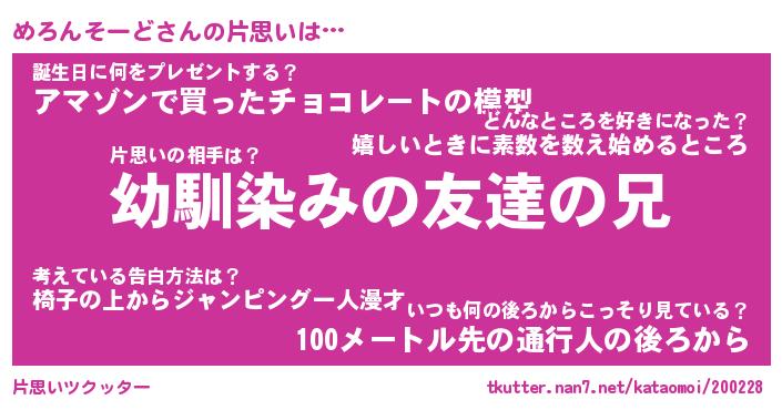 | ヘコむあだ名 | 『めろもー』『なまこ酢』『めろ太郎』 |