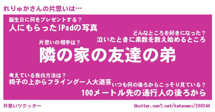 | 意味不明あだ名 | 『ペロリンれりゅか』『永久保存れりゅか』 |