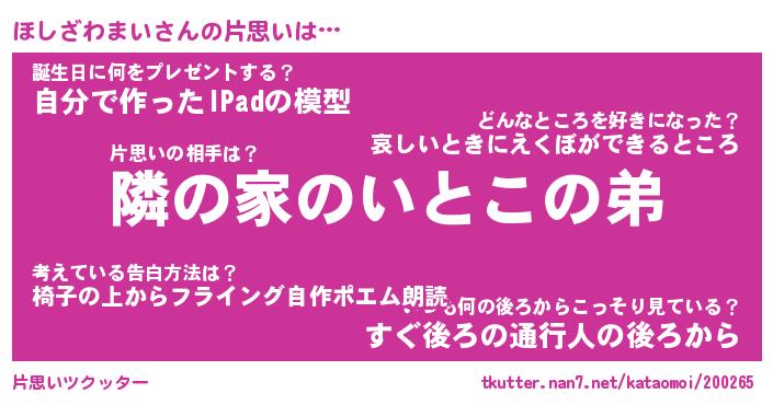 | ヘコむあだ名 | 『ほしにゅー』『牛乳』『ほしぷりん』 |