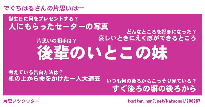 | ヘコむあだ名 | 『でぐもー』『つくし』『でぐっ子』 |