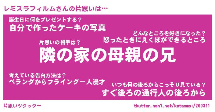 | 男性向けラノベタイトル風あだ名 | 『レミスラフィルムの憂鬱』 |