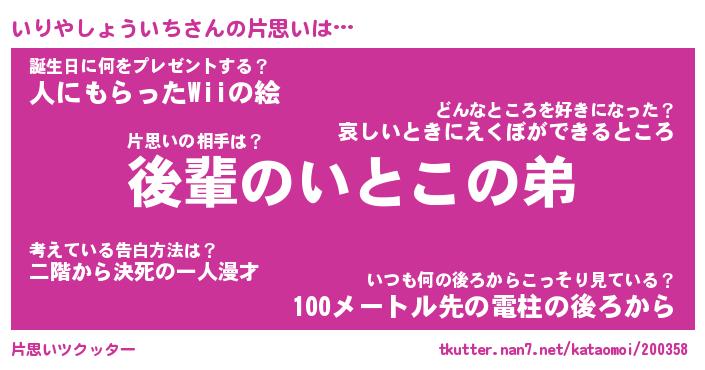 | 胡散臭い通販商品みたいなあだ名 | 『億万長者になれる水晶球…その名も「いりやしょういち」』 |