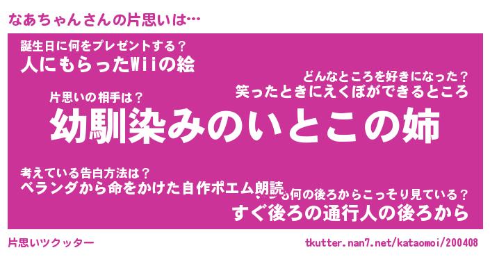 | 2回繰り返すあだ名 | 『なあなあ』『ななああ』『ふつふつ』 |