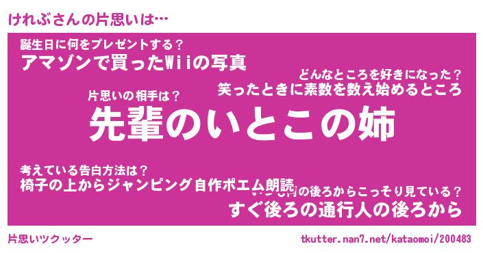 | ヘコむあだ名 | 『けれもー』『なまこ酢』『けれっぺ』 |