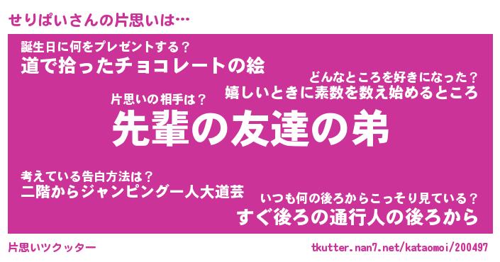 | 胡散臭い通販商品みたいなあだ名 | 『モテモテ間違いなし霊験あらたかなお札…その名も「せりぱい」』 |