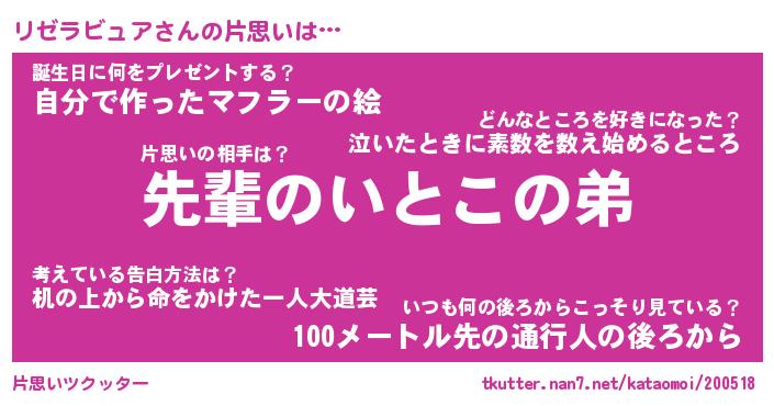 | 2回繰り返すあだ名 | 『リゼリゼ』『リリゼゼ』『いそいそ』 |