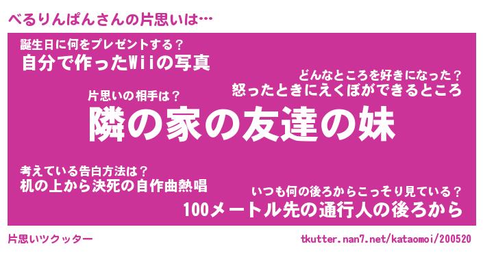 | 胡散臭い通販商品みたいなあだ名 | 『必ず成功する霊験あらたかなお札…その名も「べるりんぱん」』 |